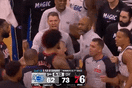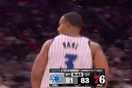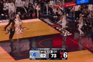 虎扑04月16日讯 今日NBA附加赛,76人对阵魔术。乔治背打贝恩随后美如画翻身后仰命中,76人领先7分打停魔术。来源:虎扑